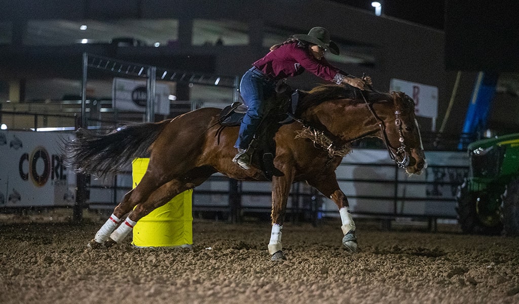 Speed, precision, and rising stars! Watch 3D pole bending, 4D barrel racing, Hooey Junior Patriot, and Junior Rope for the Crown Breakaway!