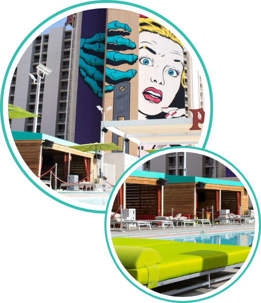 Each cabana accommodates up to six guests and is equipped with a flat-screen TV, furnishings, two lounge chairs and a mini refrigerator.