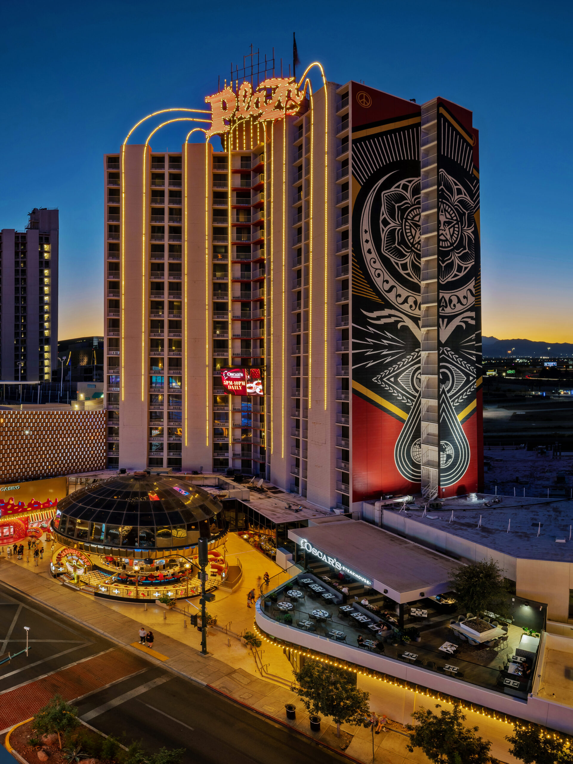 Located in the heart of downtown Las Vegas, the Plaza Hotel & Casino combines a vintage Rat Pack attitude with modern styling and personal customer service for the ultimate Vegas experience. First opened in 1971 and built on the site of the original Las Vegas railroad depot at 1 Main Street, the Plaza has transformed its historic location into a one-of-a-kind destination for cocktails, gaming, entertainment, and dining. Its glittering porte-cochere is home to the outdoor Carousel Bar that offers handmade cocktails inside of a life-sized, animated Vegas-themed carousel setting. The Main Street entrance is also home to Pinkbox Doughnuts and downtown’s first smoke-free, social media-friendly gaming space created in partnership with social media influence Brian Christopher. The Plaza has nearly 1,000 modern rooms and suites, a cladic Vegas showroom, downtown’s only bingo hall, live music at the Sand Dollar Downtown, and 30,000 sq, ft. of refurbished ballroom and meeting space. The Plaza brought the rodeo back to downtown with its CORE Arena, downtown’s only outdoor equestrian and multipurpose facility. Guests enjoy a variety of dining options led by the renowned Oscar’s Steakhouse in the hotel’s iconic glass dome and on a rooftop patio overlooking the Fremont Street Experience. A lounge-style sports book hundreds of slot machines and nearly two dozen table games comprise an 80,000-square-foot casino floor. A rooftop pool and recreation deck with private cabanas, a hot tub, a food truck, and a dedicated Pickleball court, provide a variety of outdoor amenities. For more information on the award-winning Plaza Hotel & Casino, visit www.plazahotelcasino.com. Get updates via Facebook, Instagram, and Twitter.