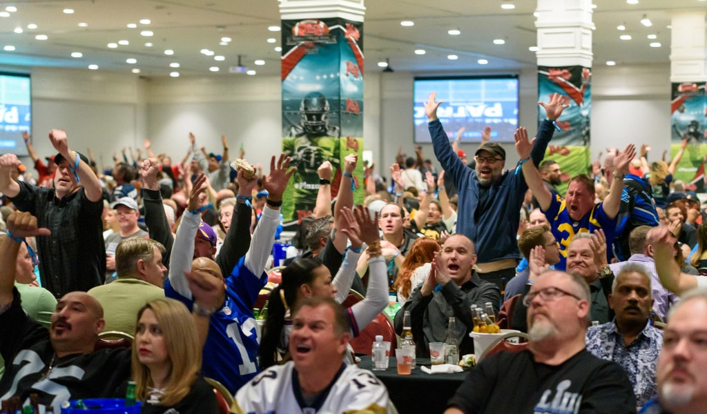 Held annually inside the Sierra Ballroom within the expansive convention space on the third floor, the Plaza’s Big Game viwing party include a complimentary stadium food buffet and free buckets of beer. There will be a cash bar for all other cocktails. The game will be broadcast on giant high definition (HD) screens located at every angle in the room. Football fans will also have convenient access to make and cash out sports bets with William Hill’s satellite betting stations. Doors open at 2 p.m. Tickets for the Big Game Viewing Party in the Sierra Ballroom are now on sale for $150 (plus taxes and fees) per person.