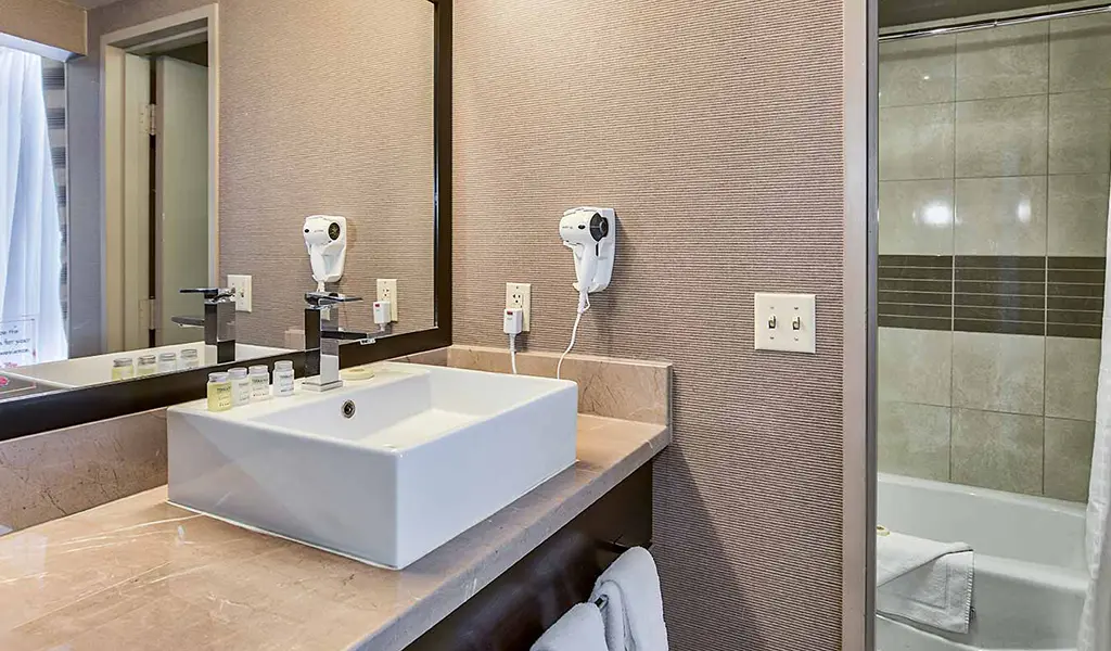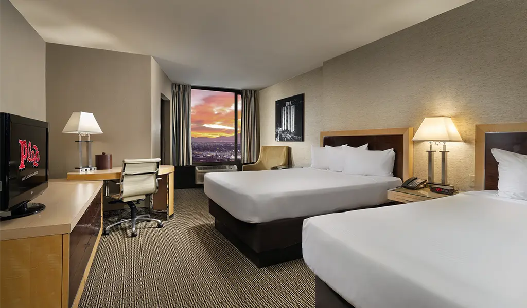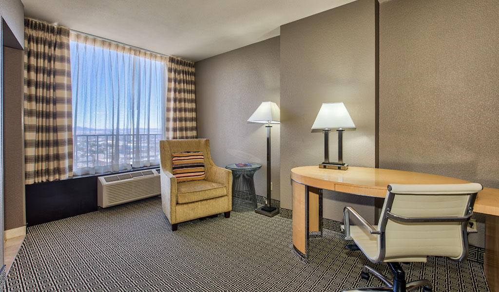 Our one bedroom suites (approximately 650 square feet) come with a living room parlor, a total of 1.5 bathrooms, in-room safe, multiple flat-screen televisions with premium cable channels, mini refrigerator, coffee maker, wet bar and all of our deluxe room amenities. Each bed features luxury bedding with fresh and crisp triple sheeting and select pillows.